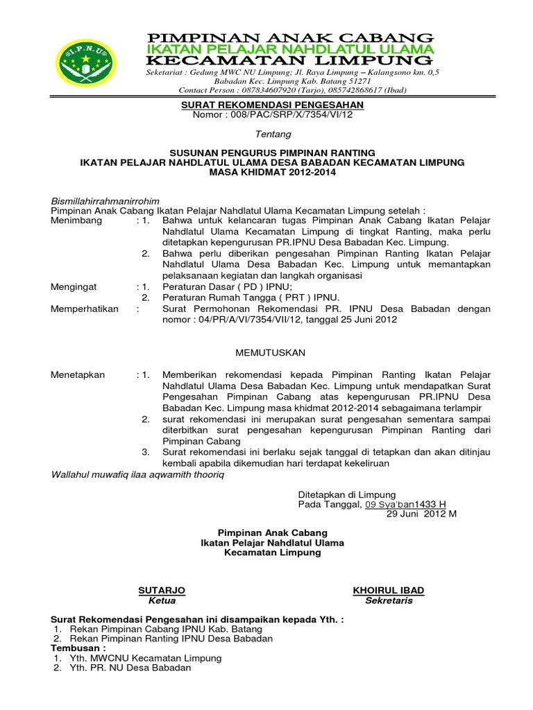 Contoh Surat Rekomendasi Nu / 20 Contoh Surat Keterangan Belum Pernah Memiliki Rumah Kumpulan Contoh Surat. Surat rekomendasi kerja iyalah surat yang di keluarkan/buat oleh suatu perusahaan atau instansi tertentu yang mana isisurat nya untuk memberikan nah, buat anda yang memerlukan sebuah contoh surat rekomendasi kerja terbaru 2020 bisa melihat beberapa contohnya di bawah ini dalam. Surat ini digunakan untuk anda yang ingin naik pangkat atau ingin diberi keterangan akan kinerja selama ini bekerja sehingga. Pembuatan surat rekomendasi tentu didasarkan akan penilaian terhadap kapabilitas maupun kinerja pemohon. Contoh surat rekomendasi pastinya dibutuhkan jika anda bermaksud mengikuti seleksi sebuah program bergengsi, melamar beasiswa yang kompetitif, maupun naik pangkat dalam pekerjaan. Biasanya, surat rekomendasi ini digunakan untuk.